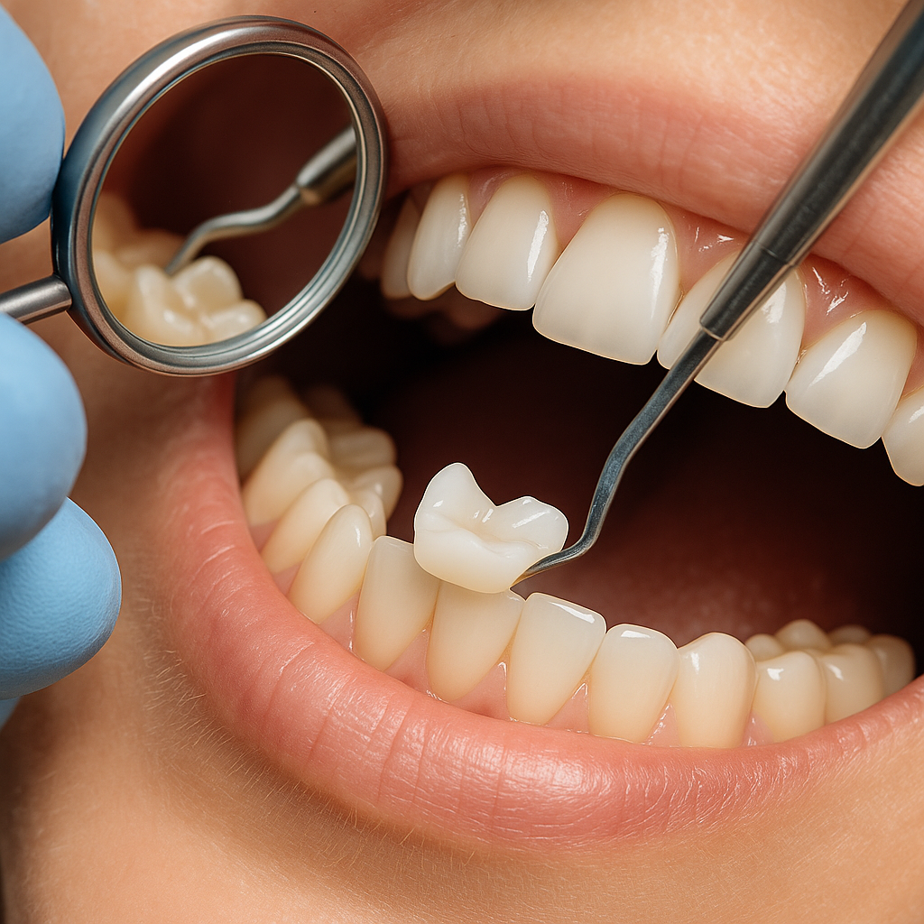 As restaurações onlays são peças confeccionadas sob medida em laboratório ou por sistemas digitais de fresagem. Diferente de uma obturação simples, que preenche apenas uma cavidade, o onlay cobre parte da superfície de mastigação, podendo incluir uma ou mais cúspides do dente. Isso garante maior proteção e reforço às áreas comprometidas.